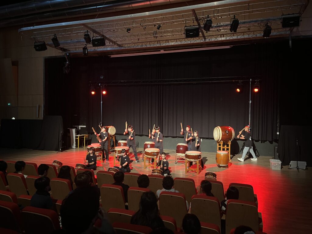 2日目は、パリ郊外にある由緒あるインターナショナルスクールを訪問し、太鼓演奏と太鼓体験ワークショップを実施しました。太鼓演奏前には、広大な敷地にある大きな校舎を見学させていただきました。担当者の方はもちろん、インターナショナルスクールの児童生徒も温かく迎え入れてくれました。