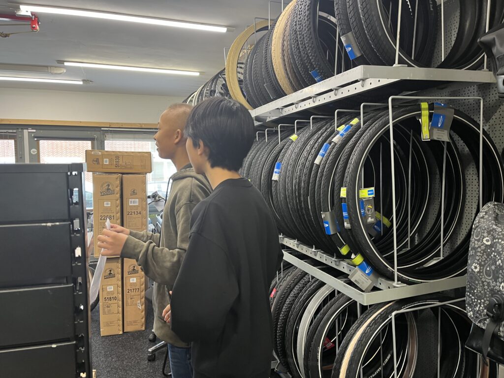 同日午後に行われるPTAによるバザーの告知のために、中学部6人で学校周辺の商店街へ行ってきました。