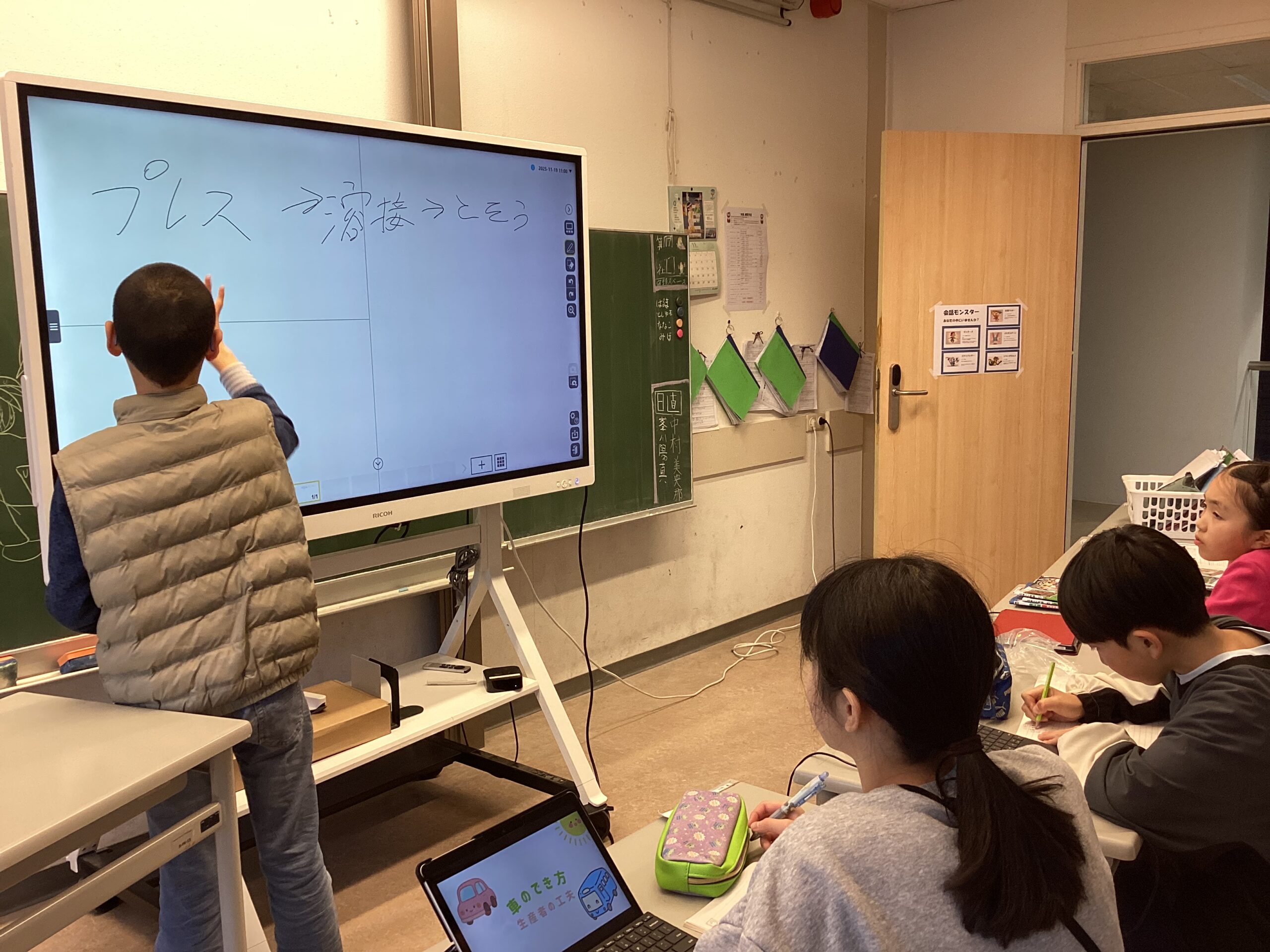EUでは2035年にガソリン車の新車販売を停止する方向です。環境を考えた上での自動車のあり方について子供たち一人ひとりが考えていました。