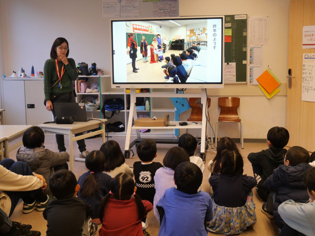 JSRの子どもたちが英語を使って、今日の説明や流れを紹介します。